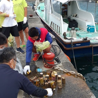 近年、清掃活動も増えているせいか、昔ほどの大きなゴミは目立ちませんが、まだまだ、ビン・缶・ペットボトル等たくさんありますね。道端には、たばこの吸い殻、マスクも目立ちますね・・・参加の皆さんには、各袋に分別していただき、約1時間ほどの作業を行いました。港内とてもきれいになりました!!